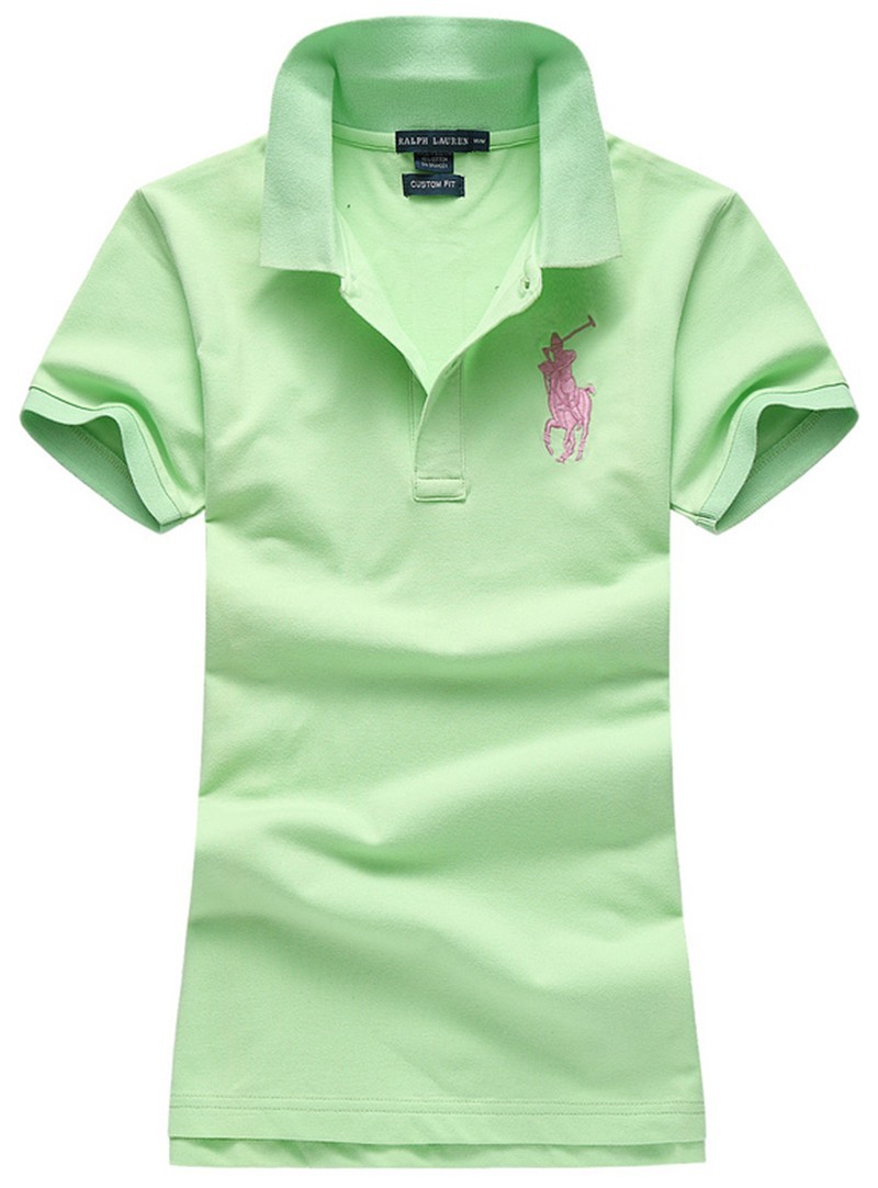 ראלף לורן-RALPH LAUREN POLO TSHIRT SHORT WOMEN – Light Green & Pink Logo