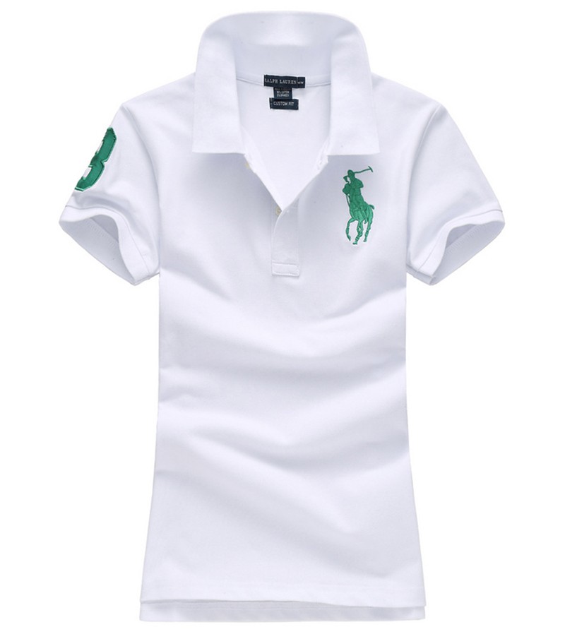 ראלף לורן-RALPH LAUREN POLO TSHIRT SHORT WOMEN – White & Green Logo