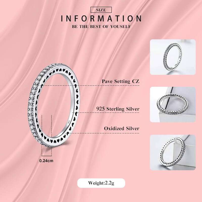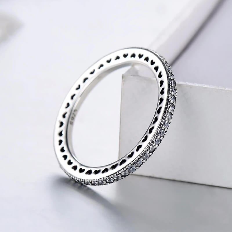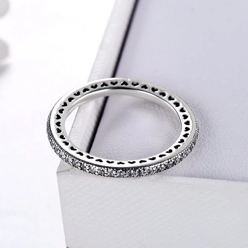 טבעת יוקרה-Silver Ring Hearts Arrows Zircon