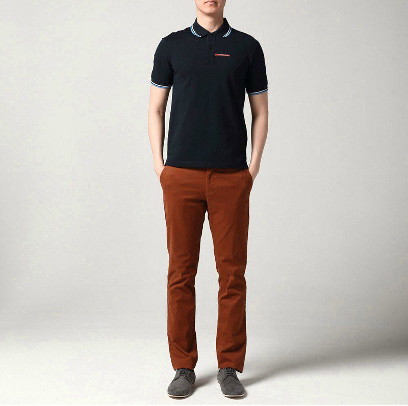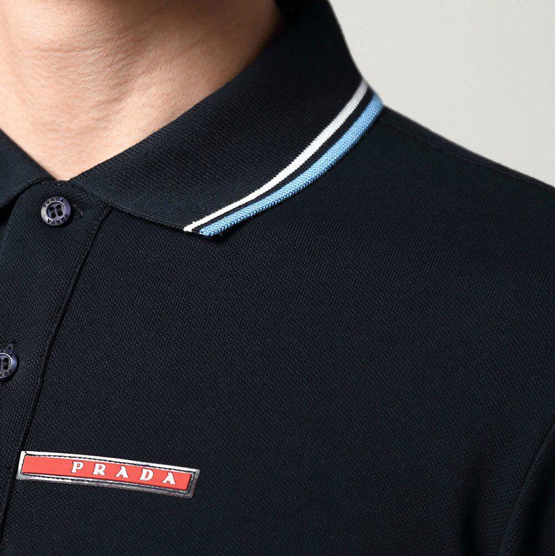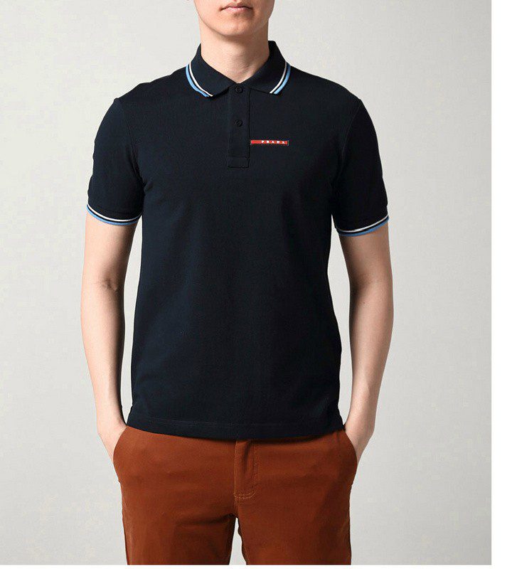 פראדה-PRADA TSHIRT POLO SHORT MEN – Black & White Blue Border