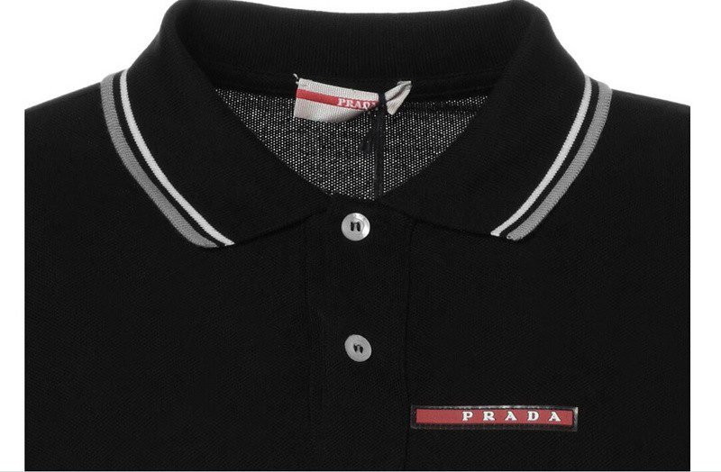 פראדה-PRADA TSHIRT POLO SHORT MEN – Black & White Gray Border