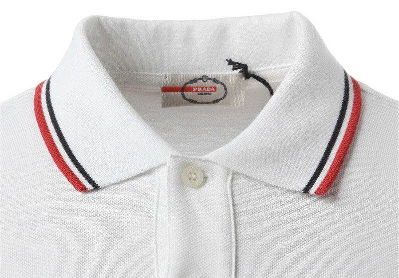 פראדה-PRADA TSHIRT POLO SHORT MEN – White & Blue Red Border