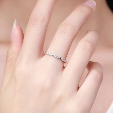 טבעת יוקרה-Silver Geometric Stackable Clear CZ Finger Rings For Women